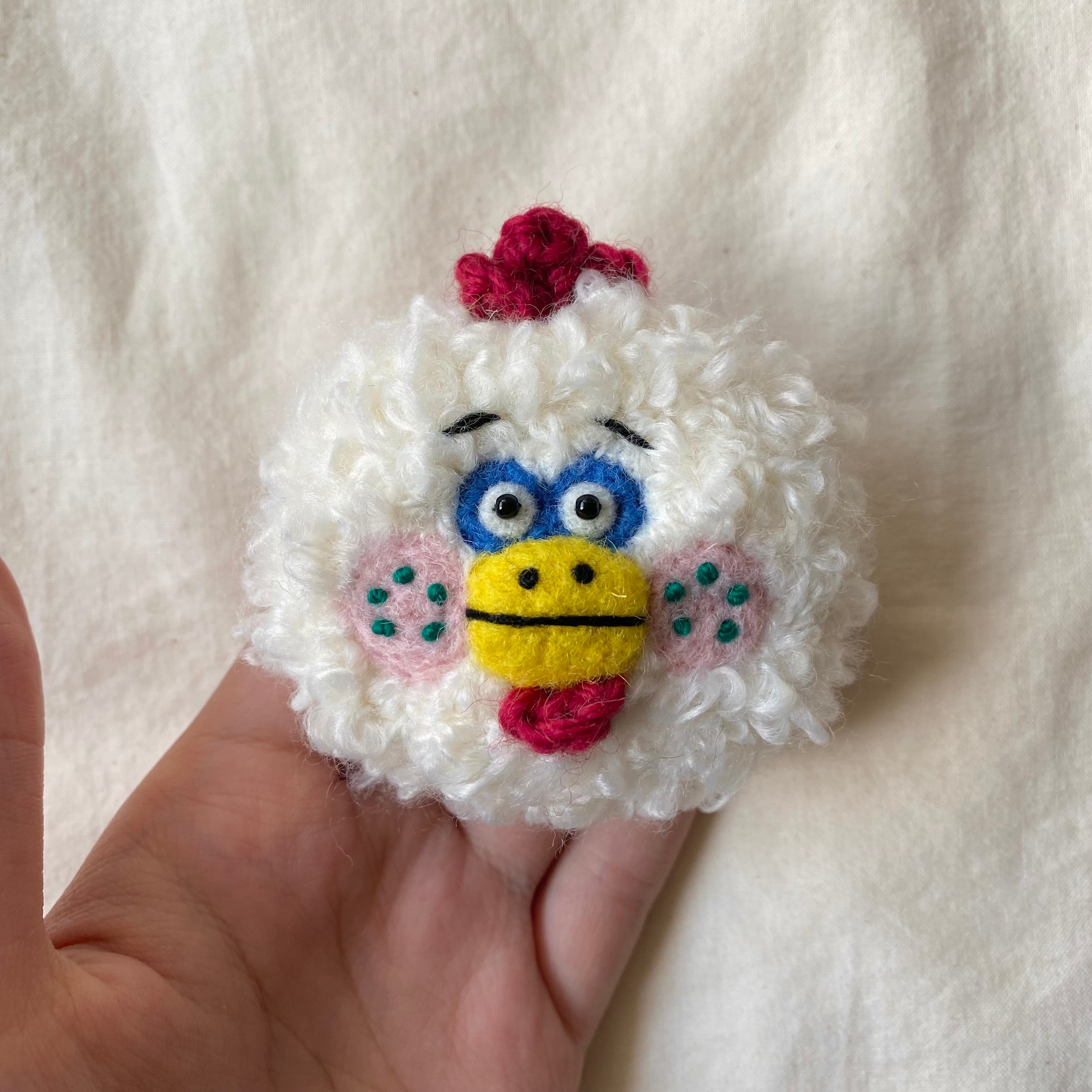 もふもふにわとりさんの編みぐるみブローチ◎